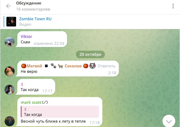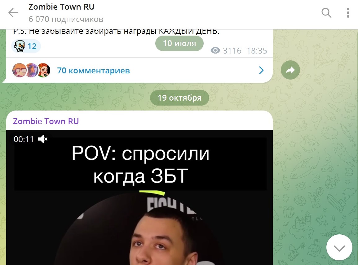 Обзор каналов и чатов «Зомби Таун» в Телеграмме