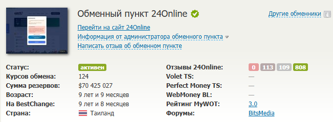 24 Online su не похож на мошеннический ресурс. Однако не стоит переводить через него большие суммы денег за один раз, чтобы не рисковать. Подобрать ресурс с большим количеством доступных для обмена монет вам помогут обзоры, опубликованные у нас на сайте.