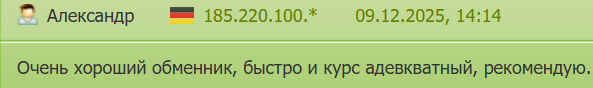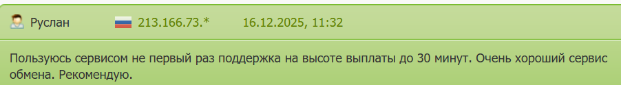 Второй пользователь отмечает оперативность работы и адекватный обменный курс на этой площадке.