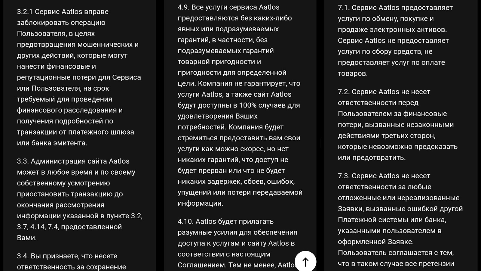 На платформе представлены правила работы. В них сказано, что администрация может останавливать финансовые процедуры по своему усмотрению. Также прекращать доступ к сайту. Сервис не будет брать ответственности за убытки и отложенные заявки.