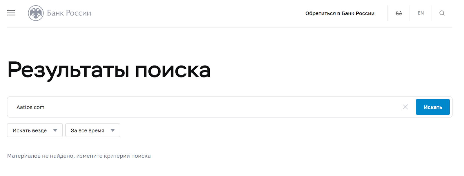 Статистики с количеством пользователей на бирже Aatlos com и их совершенными обменами не опубликовано. Сканы лицензии отсутствуют, как и регистрационный номер. На сайте Центробанка РФ мы не нашли сведений об обменнике.