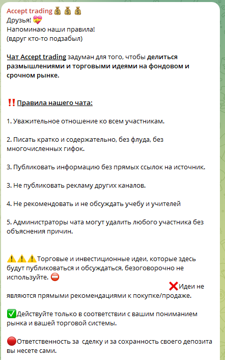 Телеграм-канал Accept Trading: отзывы пользователей, предложения для инвесторов