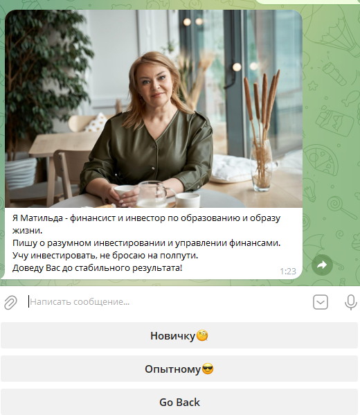 Несмотря на то, что автор проекта позиционирует себя как опытного инвестора, никаких доказательств этому она не приводит. Информацию о собственном портфеле Матильда не демонстрирует, документов об указанном образовании финансиста также нет. Работать по сигналам от данного эксперта может быть рискованно.