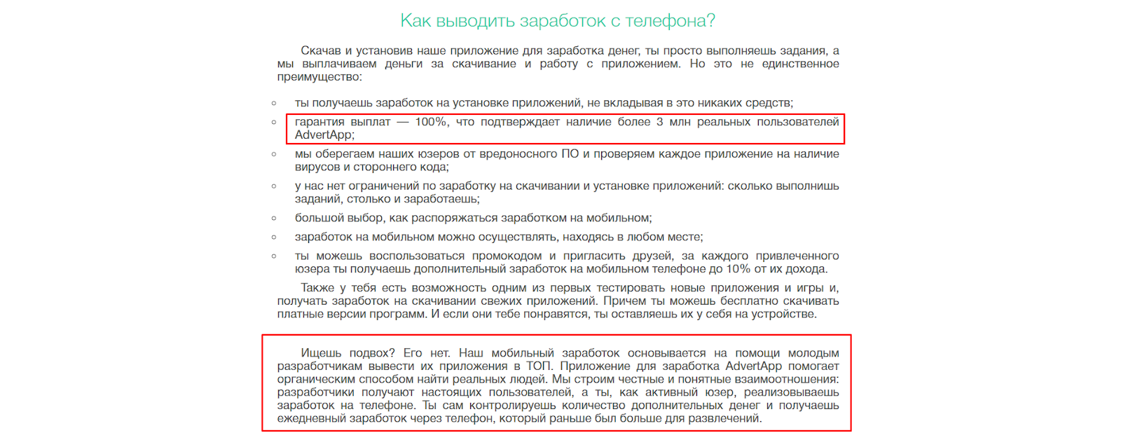 Мы не рекомендуем начинать сотрудничество с проектом AdvertApp и считаем, что заработать с ним — невозможно, по следующим причинам: