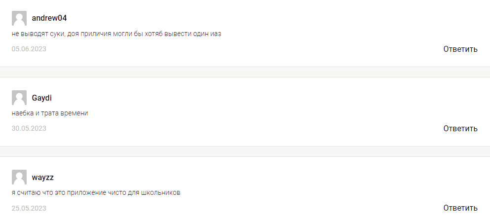 - мошенничество: пользователи заявляют об отмене выплат, долгом сроке ее обработки, а также полный игнор в службе поддержки, поэтому заработанные деньги им не приходят и остаются в руках проекта.