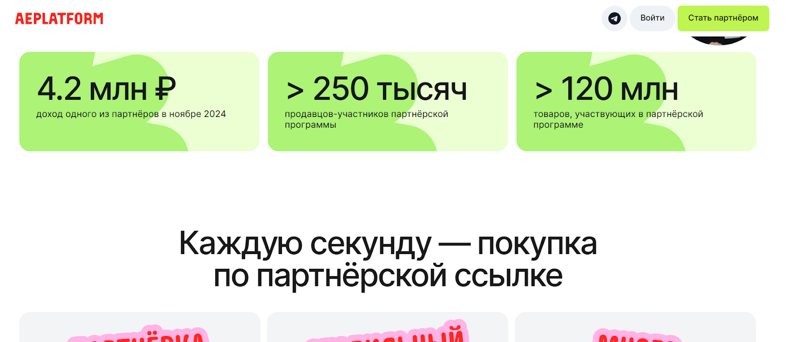 За несколько лет работы происходило разное, включая прекращение выплат в 2021-2022 году, что подпортило репутацию «Ае платформ». Сейчас в программе – более 120 миллионов товаров, которые реализуются благодаря 250 тысячам участникам партнерской программы.