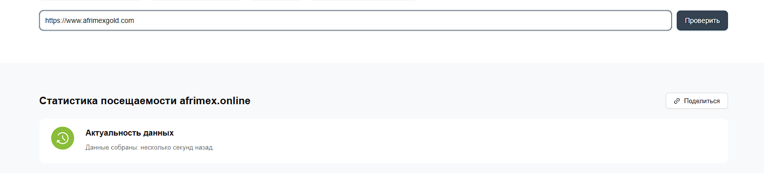 При проверке активности домена afrimexgold com, также выяснилось, что за целый месяц никто его не посетил, хотя регистрация, работа с компанией и инвестиции осуществляются именно через него.