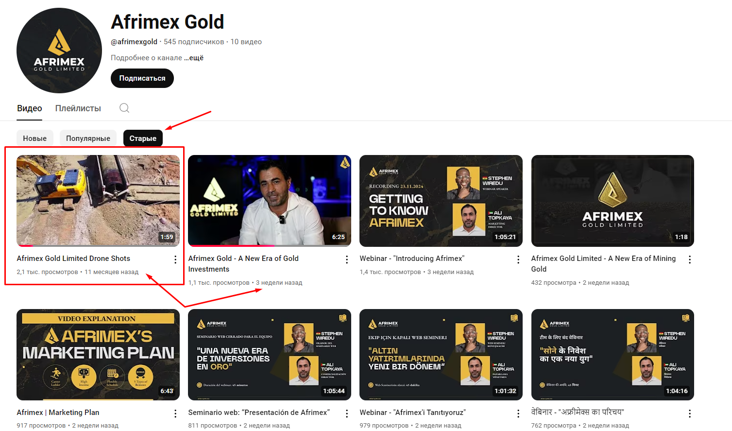 А вот абсолютно все новые видео загружены в течение последних двух недель, что и является реальной датой создания скам фонда afrimex.