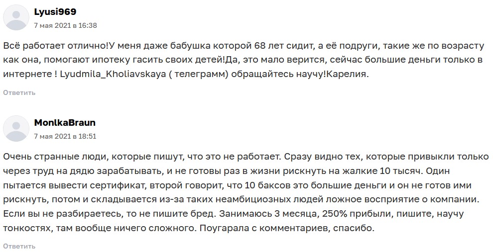 Как и у всех пирамид, у АЙ Маркетинг были агрессивные адепты, которые ее защищали. Аргументировали это тем, что деньги «раньше приходили».