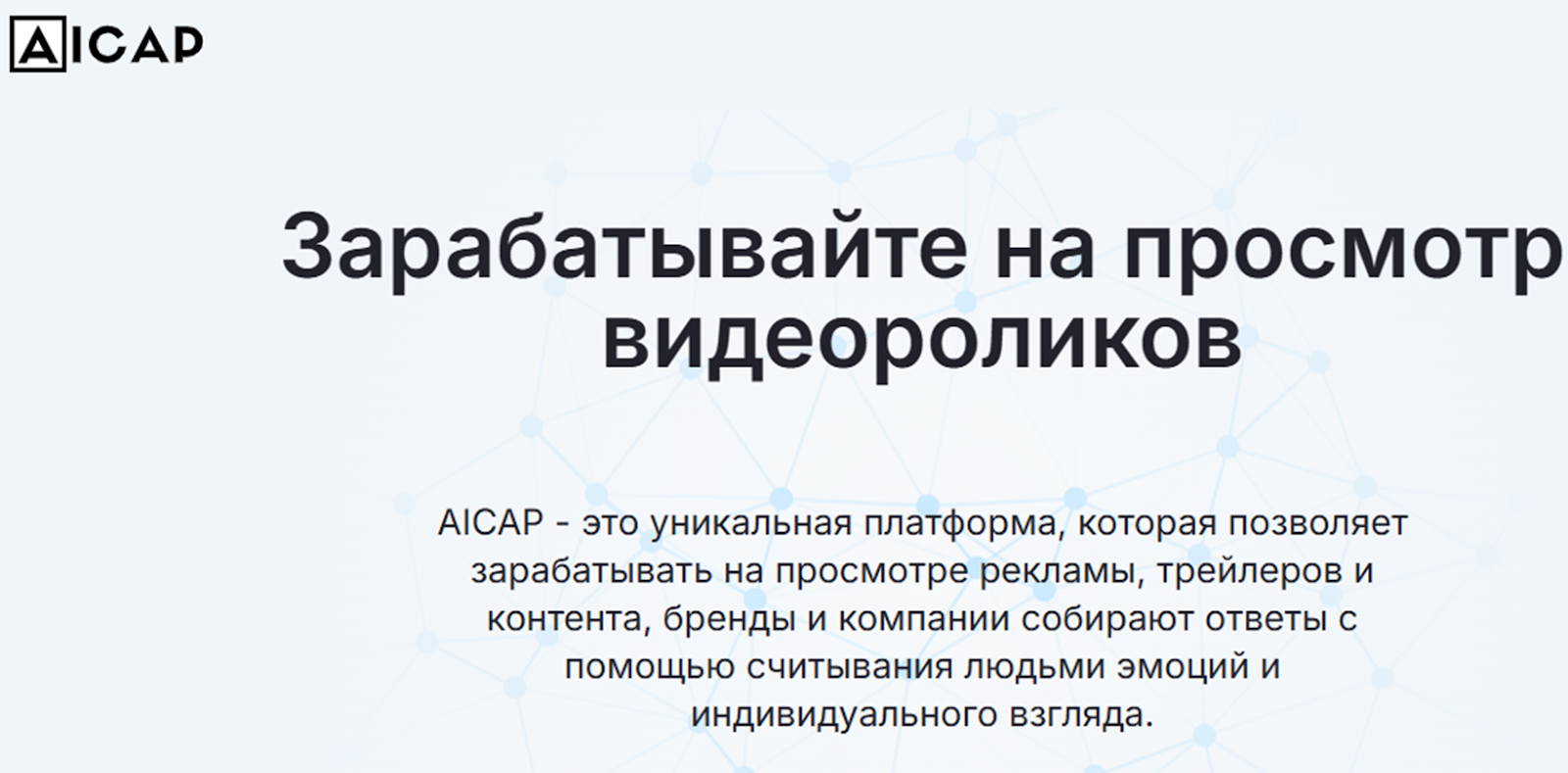 Заработок на Aicap осуществляется за счет просмотра рекламы, трейлеров и контента. Сказано, что бренды собирают обратную связь за счет считывания эмоций пользователей. Поэтому обязательным условием для заработка является работающая веб-камера на ноутбуке или наличие фронтальной камеры на смартфоне.