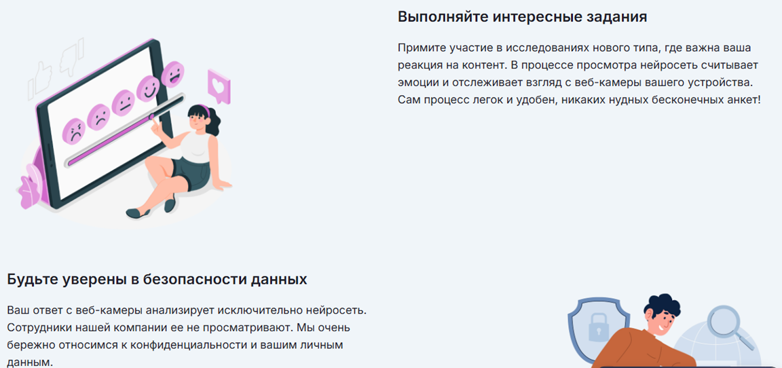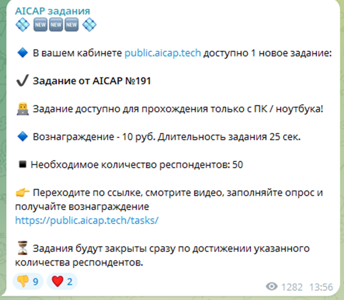 Сказано, что за выполнение одного задания можно получить от 10 до 150 рублей. В описании Aicap tech сказано, что нейросети считывают реакцию пользователей и отслеживает взгляд с веб-камеры устройства. При этом, сказано, что сотрудники проекта весьма бережно относятся к сохранности личных данных пользователя и берегут их. Но, если учитывать, что на сайте нет ни единого официального документа и каких-либо других гарантий, то верить этим словам приходится на слово.