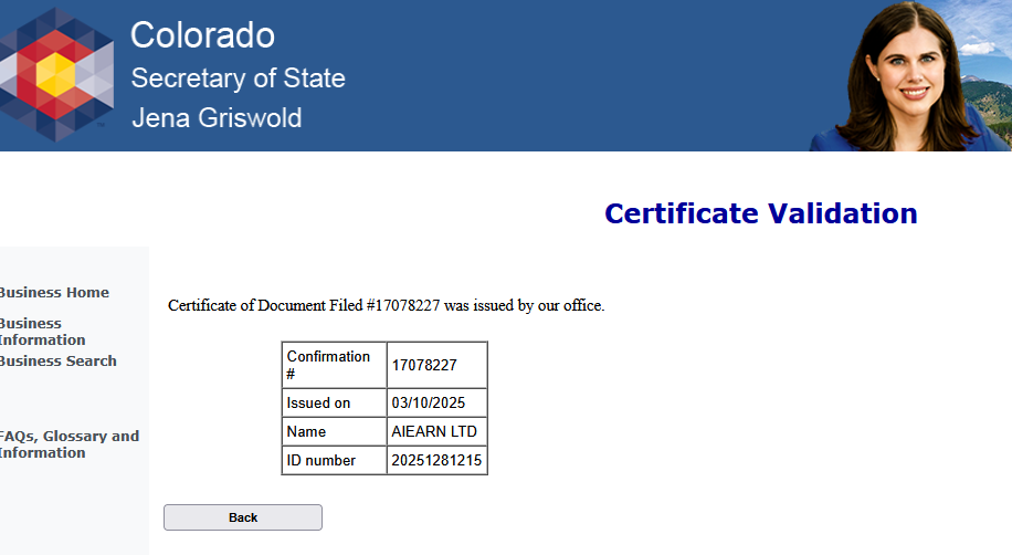 Проверка сертификата действительно показала, что в Колорадо есть такая компания.