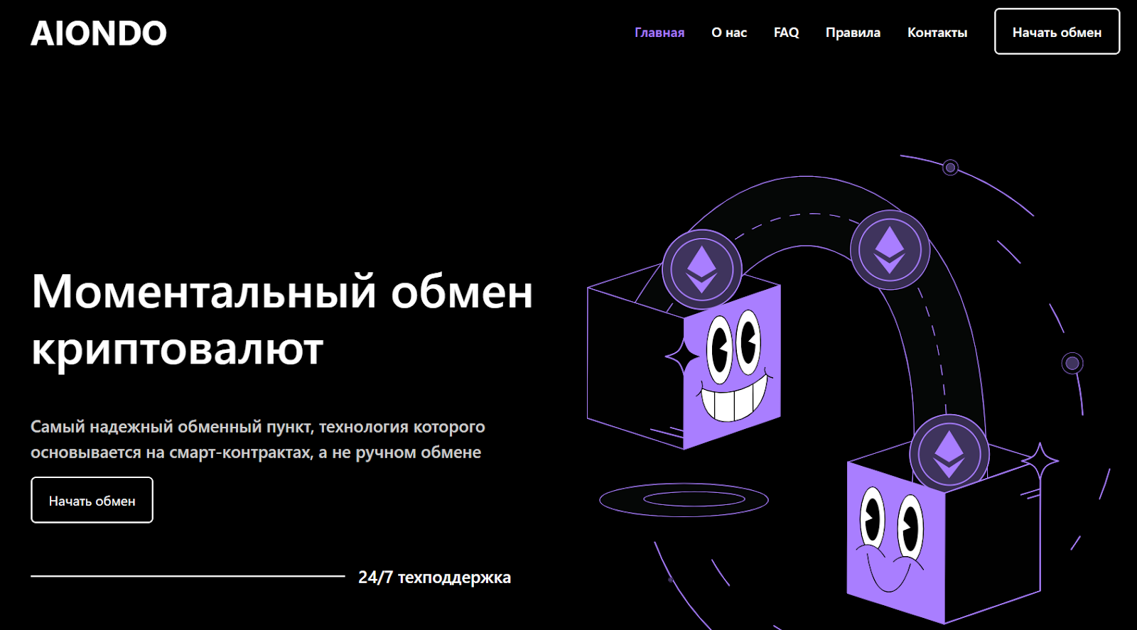 Aiondo – обменник, создатели которого утверждают, что его технологии основываются на смарт-контрактах. Площадка позиционирует себя как быстрая, удобная и надежная. В первую очередь для пользователей важны безопасность хранилища и платежей. Мы захотели выяснить, не мошенники ли перед нами.