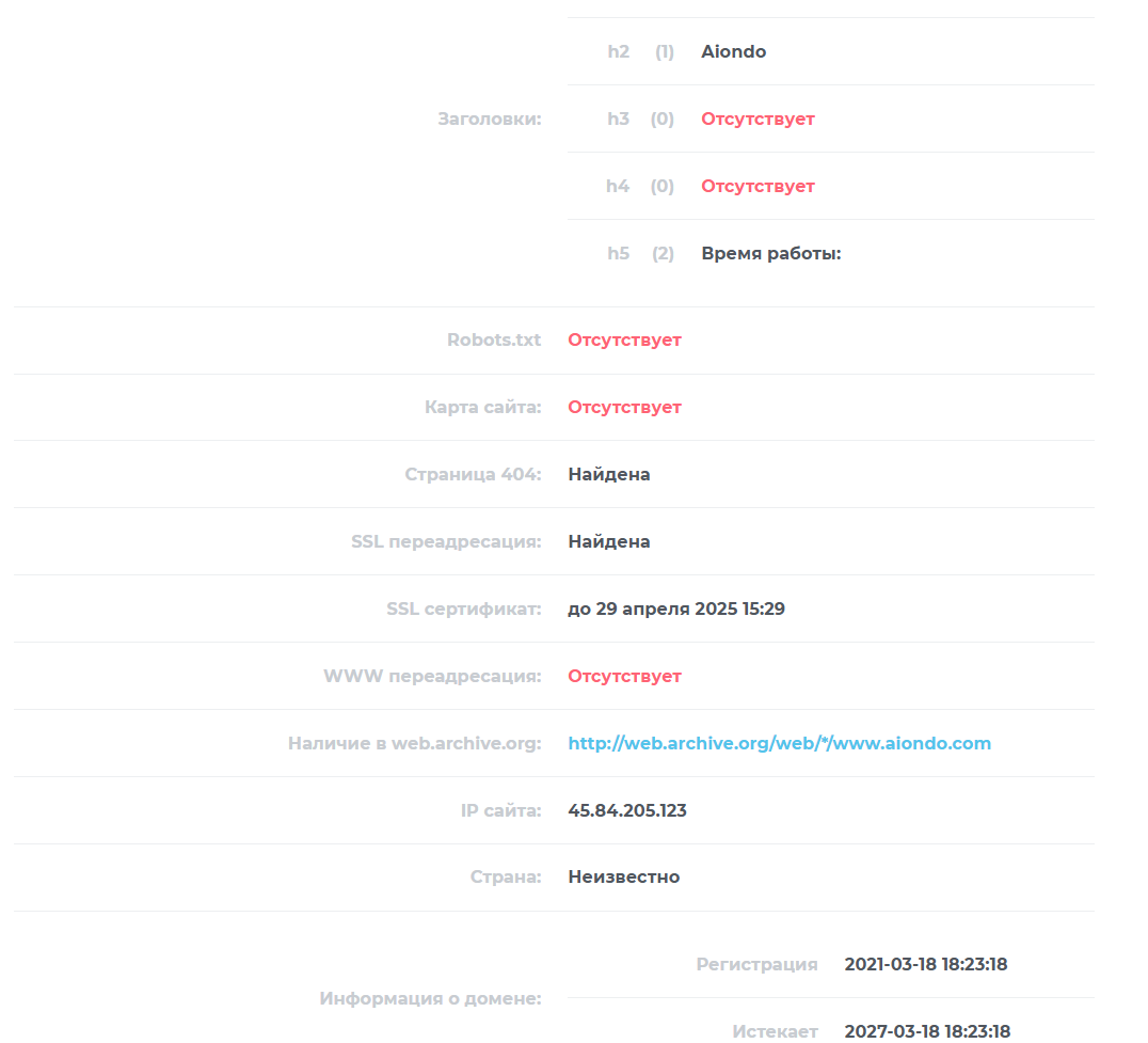 Домен aiondo com существует с 2021 года. Но это не подтверждает, что компания работала все это время. Часто такие лохотронщики покупают старые ресурсы, чтобы казаться опытными профессиональным организициями. Если бы это было так, на сайте были бы документы.