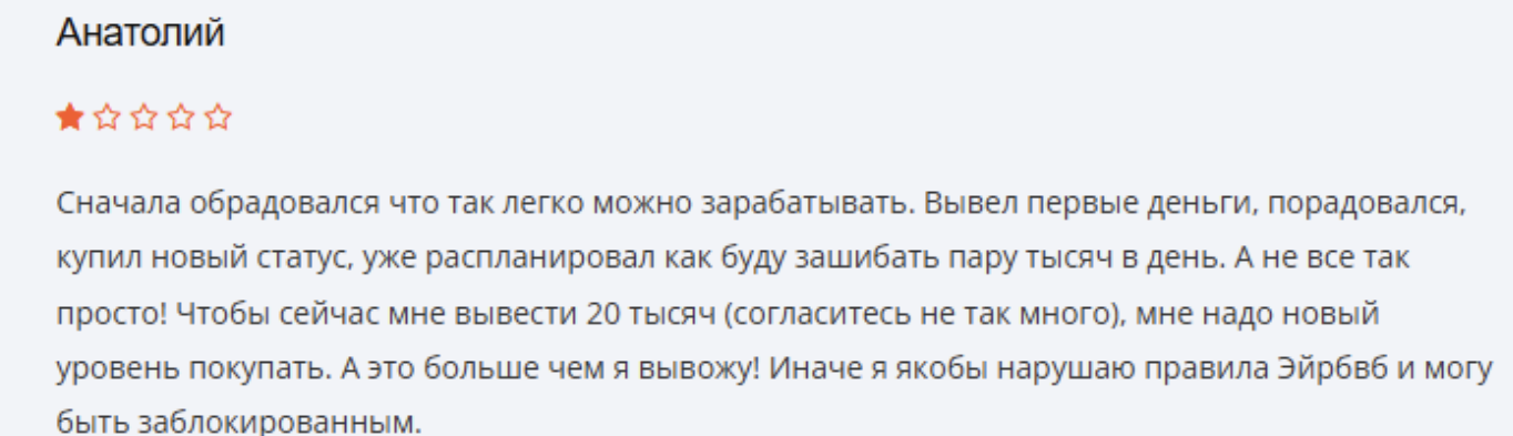 Проект «Эйрбвб» представляется сервисом по заработку на сдаче «виртуальной» недвижимости в аренду. Даже само описание платформы звучит неубедительно и вызывает скепсис. По состоянию на август 2025 года сайт платформы отключен, потому нам пришлось искать скрины его страниц в интернете.