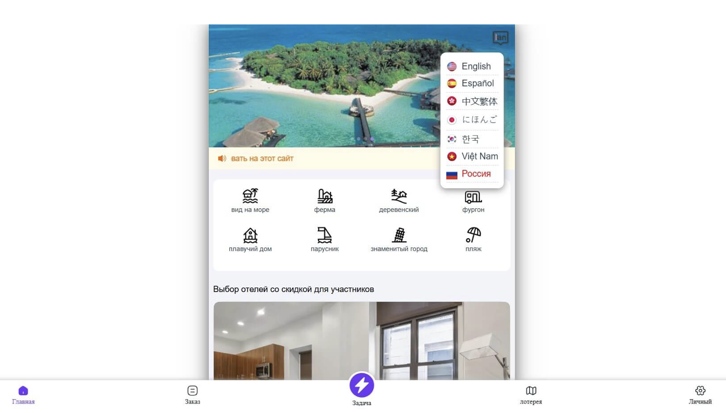 На главной странице платформы указывалось, что она предлагает аренду отелей с упором на рынок США, что объясняет указание цен в американских долларах. По обзорным статьям и отзывам мы поняли, что на сайте не было информации о правилах пополнения счета, не разъяснялась схема начисления прибыли. Создатели проекта обещали подробно раскрывать данные детали после прохождения пользователем регистрации.