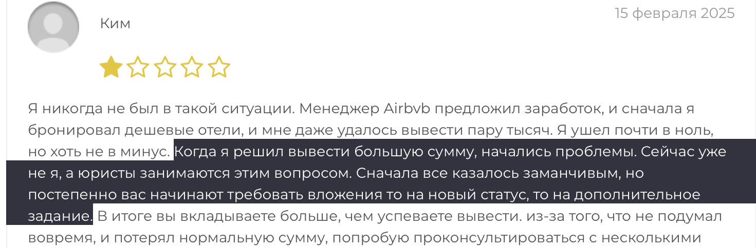 Фейковая платформа не раскрывает, как именно формируется доход и куда следуют деньги участников. Такой подход позволяет скамерам легко манипулировать выплатами, затягивать их — а потом резко прекращать.