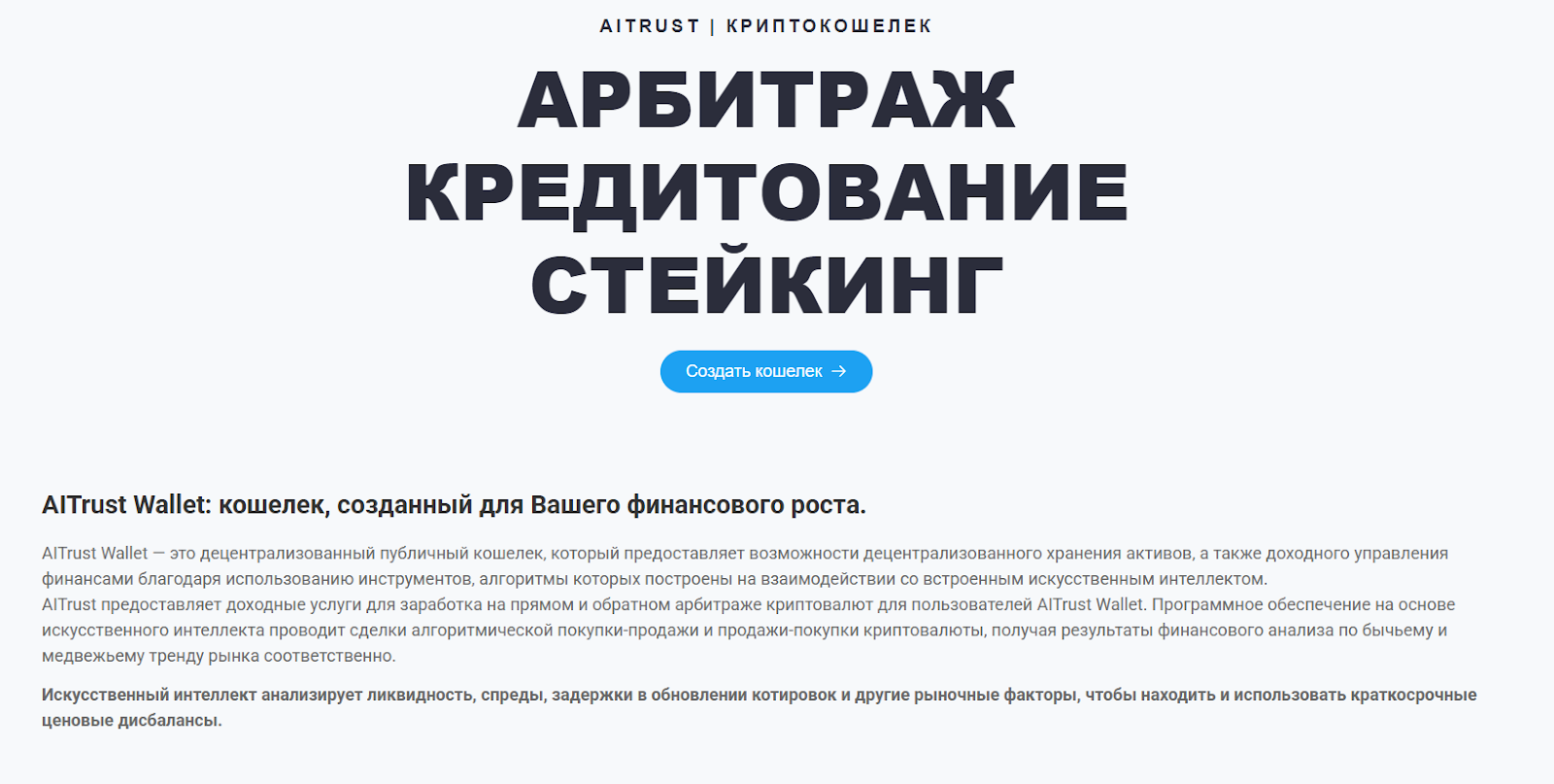 AiTrust — это инвестиционная компания, замаскированная под криптовалютный кошелек. Создатели платформы утверждают, что они стабильно зарабатывают на арбитраже и предлагают вкладываться в них. Мы решили внимательно изучить кошелек Ai Trust, посмотреть, как он работает и что предлагает сама компания.