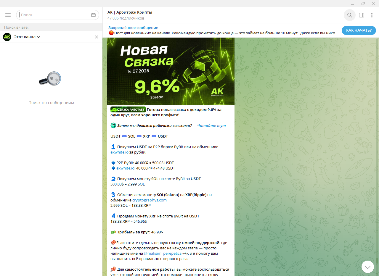 Учитывая написанное выше, мы не рекомендуем пользоваться арбитражными советами этого телеграмм-канала из-за сторонних обменников, которые он продвигает. Если вам нужны профессиональные сигналы, лучше обратиться к проверенным экспертам в сфере трейдинга.
