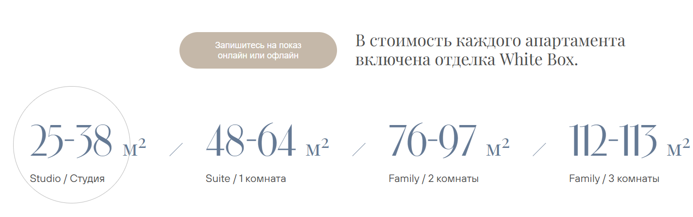 Платформа кратко информирует о главных параметрах апартаментов: метраже и количестве комнат. Однако отсутствуют подробные схемы и фотографии конкретных помещений. Это «красный флаг» — возможно, в реальности квартиры отличаются от своих описаний в интернете, а то и вообще не существуют.