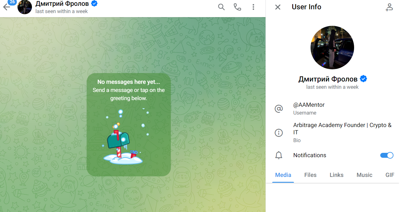 Дмитрий Фролов не рассказывает о своем опыте работы в сфере арбитража, и верифицированную отчетность по сделкам не ведет. Он просит проходить регистрацию по партнерской ссылке на определенных площадках, и таким способом получает доход даже на убытках пользователей. Из прочих сведений мы отметили: