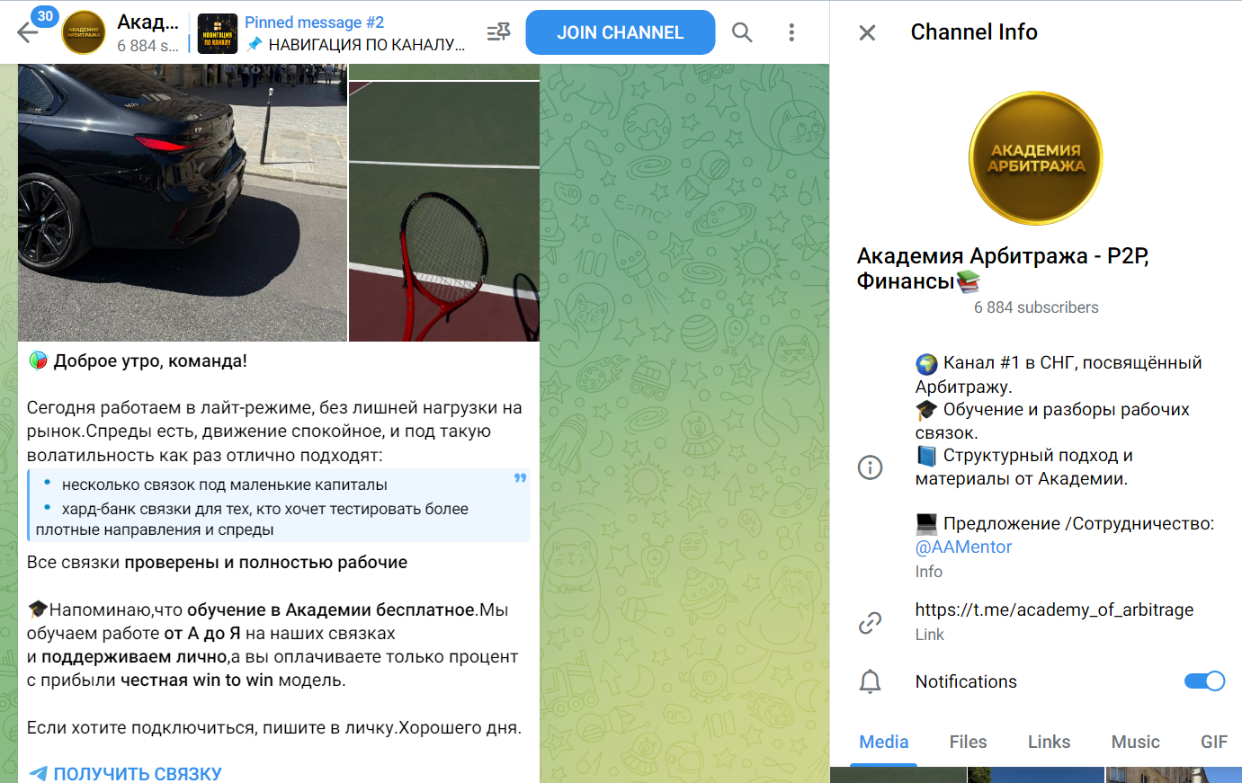 Академия Арбитража P2P Финансы — это Telegram канал, в котором публикуются разборы тем по арбитражу и анализ рынка криптовалют. Основатель проекта работает с командой и предлагает совместную работу, обещая качественные связки и рекомендации по выходу на большой доход. Далее мы расскажем про условия сотрудничества и репутацию тг-канала в сети.