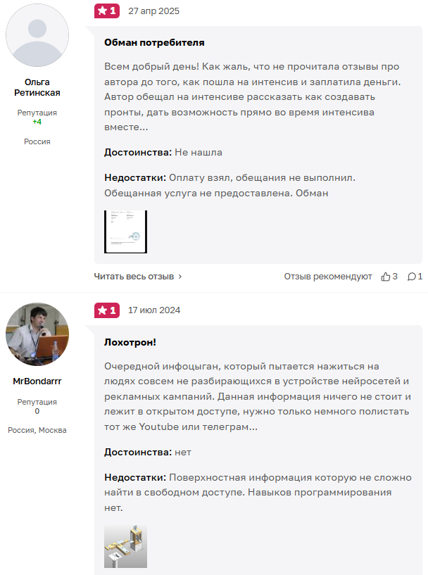 Некоторые отзывы о pult ai ru забавные. Человек пишет, что реально проходил все курсы и ему понравилось. Правда проблема в том, что лицо образовательной программы — Евгений, а не Андрей. А так да, сомнений не вызывает.