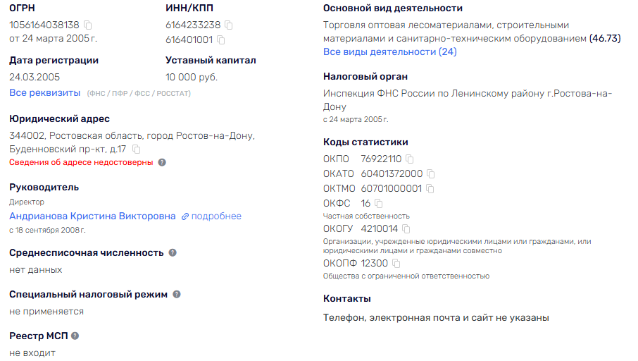 Больше интересных фактов о биографии нет. Известно только, что у Евгения есть жена, с которой они ведут бизнес, и двое детей. Возможно, налоговой стоит присмотреться к ИП Андриановой Кристины Викторовны. Возможно, муж и жена не просто так работают на УСН.