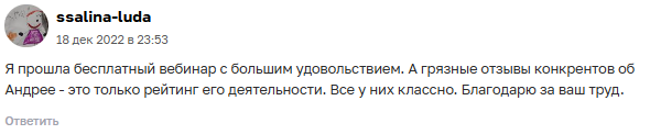А вот так выглядят положительные отзывы. Девушка прошла бесплатный интенсив. И написала положительный отзыв об обучении.