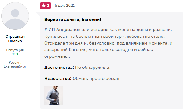 Скорее всего, это действительно арбитражники. Они используют разные методы, в том числе прямой обман. Только проблема в том, что это никак не оправдывает самого Андрианова. Если он не контролирует, как продают его курсы, то клиентов обманывает, в том числе и он.