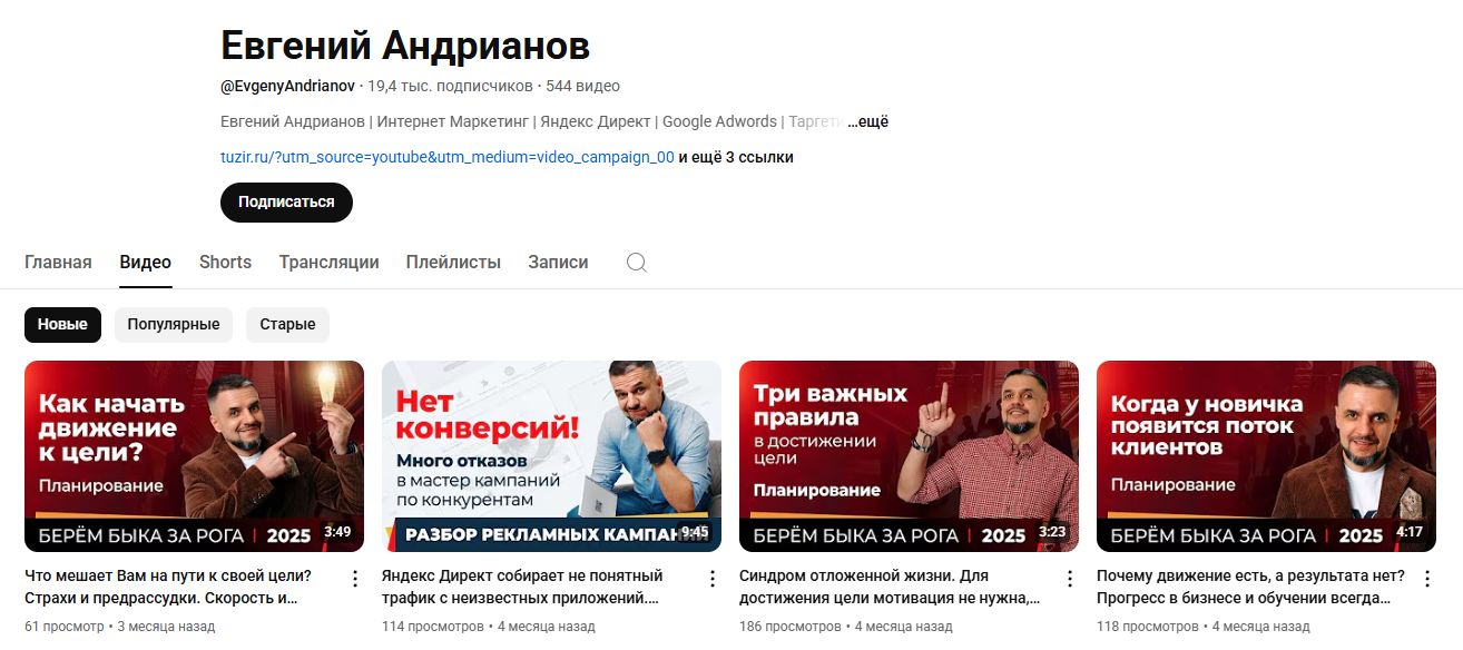 Если кому-то покажется, что социальные сети — не показатель, то можно зайти на Youtube Андрианова @EvgenyAndrianov. Там такая же ситуация. 20 000 подписчиков, и максимум 300 просмотров под видео.