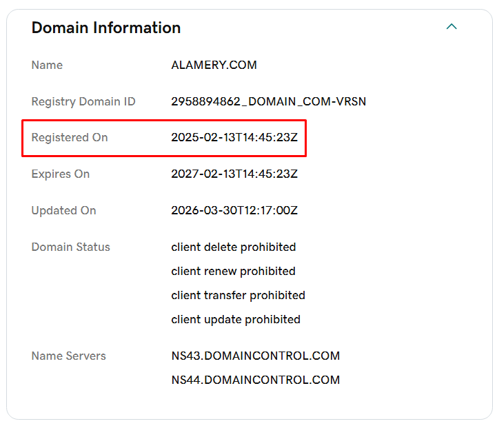 Мы не нашли никакой информации о владельцах. О самом обменнике нет данных в социальных сетях и на авторитетных порталах вроде BestChange и Kurs Expert, где публикуются списки надежных сервисов. Это выглядит подозрительно и говорит о нежелании владельцев пройти независимый аудит, чтобы получать честные отзывы. При проверке с помощью WHOIS домена Alamery Com также обнаружились подозрительные моменты. Зарегистрирован он был в 2025 году, однако ранее принадлежал другой компании. К подобной практике часто прибегают мошенники для создания искусственной репутации.
