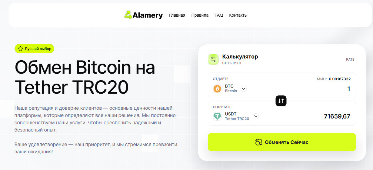 Обзор криптообменника Alamery Com: условия и направления сделок, проверка надежности, рекомендации и отзывы клиентов об «Алмери Ком»