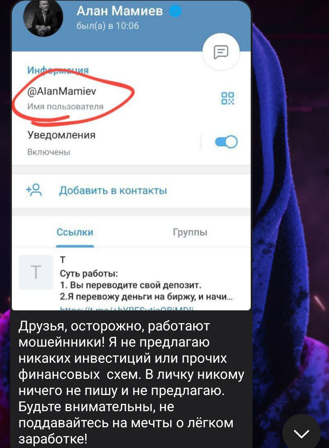 - В сети регулярно появляются страницы, использующие бренд AlanMamiev, а значит подписчики могут потерять деньги, если не проверят источник.