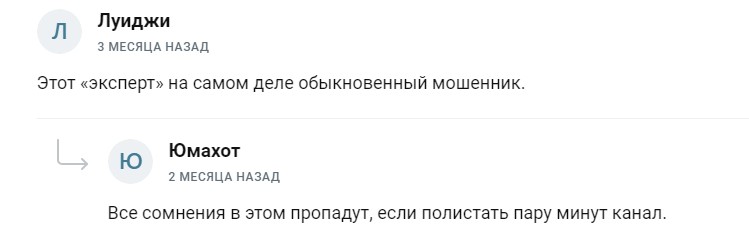 Доказательств того, что трейдер Александр Орлов — мошенник, нет, но его канал нельзя рекомендовать для подписки. Есть большой риск слить депозит, если окажется, что трейдер не умеет торговать в плюс и выдает некачественные сигналы.