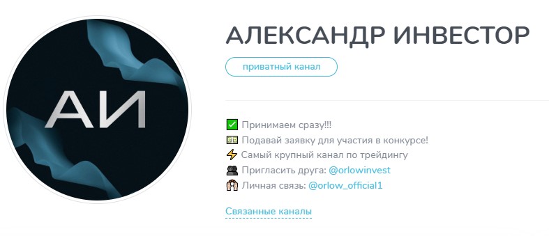 Александр Инвестор Телеграмм-канал трейдера бинарных опционов Александра Орлова. Не оказывает платные услуги, пообещал подписчикам бесплатную випку с очень прибыльными сигналами. Проверим, как на самом деле работает герой обзора и какие отзывы инвестор Александр Орлов получает от подписчиков.