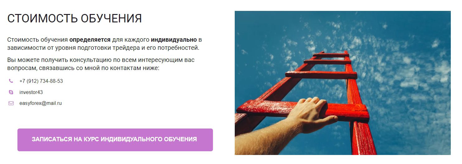 Единственное что смущает – цена обучения согласовывается с трейдером Родионовым индивидуально. Получается, что аналитик сам решает с кого взять по полной, а кому сделать скидку.