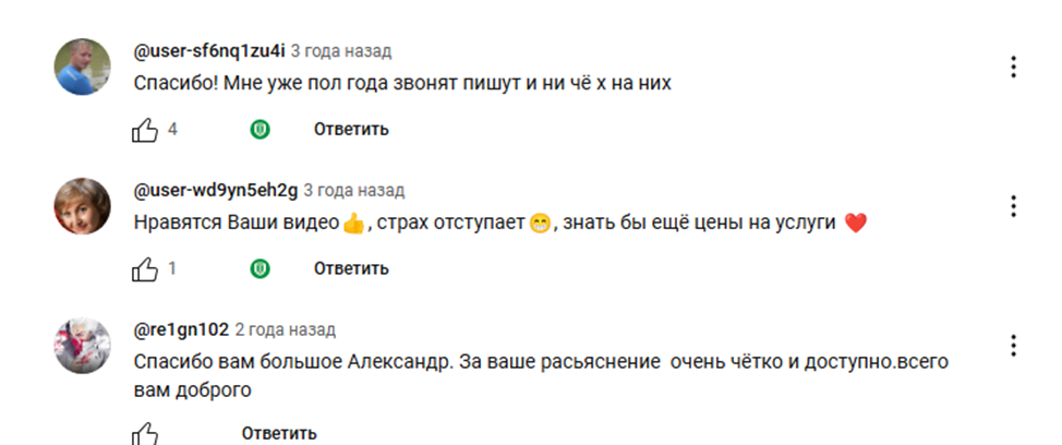 Как и любой успешный инвестор, Александр Унгурян мечтает о положительных отзывах. Однако, как ни старался трейдер привлечь к себе внимание, на сторонних ресурсах нет обилия комментариев. Почти весь фидбек, опубликованный в интернете, касается его юридической консультации. Под видео на канале «Должник прав» есть как благодарности, так и обвинения в некомпетентности.
