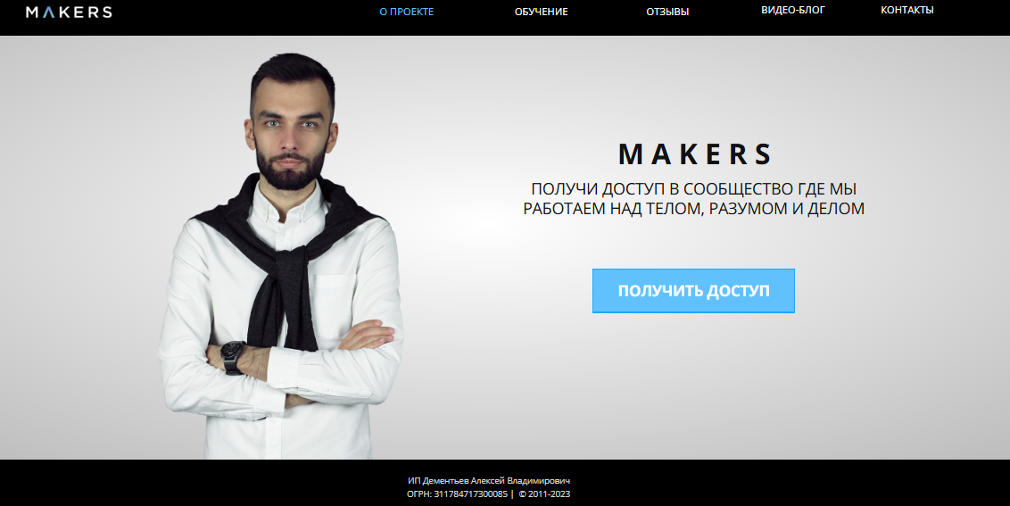 • Сайт-визитка home.makers bz, где размещена краткая информация об авторе и его курсах (тарифы, старт набора, запись).