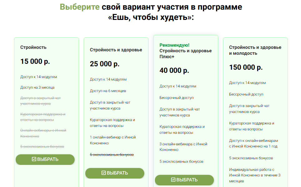 3. Стройность и здоровье Плюс — 40 тыс. руб. (бессрочный доступ).