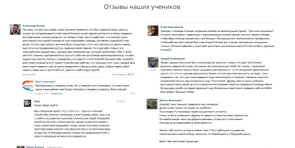 На собственных ресурсах Алексей Дементьев публикует большое количество положительных отзывов, в основном видео. Все они носят ожидаемо благодарственный характер и рассказывает о росте дохода, энергии и улучшение качества жизни.