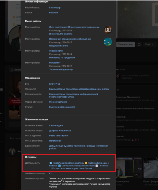 Алексей Унжаков – адепт Кийосаки, который, судя по отзывам, вел обучение просто путем пересказа его книги. Эта информация подкрепляется его легендой. Якобы Унжаков прошел путь от инженера, который зарабатывал 8 000 рублей в месяц, до владельца целого ряда компаний. В общих чертах – стандартная легенда для инфобизнесмена. Помог ему выйти из бедности Богатый папа, бедный папа. Кстати, на своей странице в ВК aunzhakov, автор сделал себя «партнером Кийосаки: