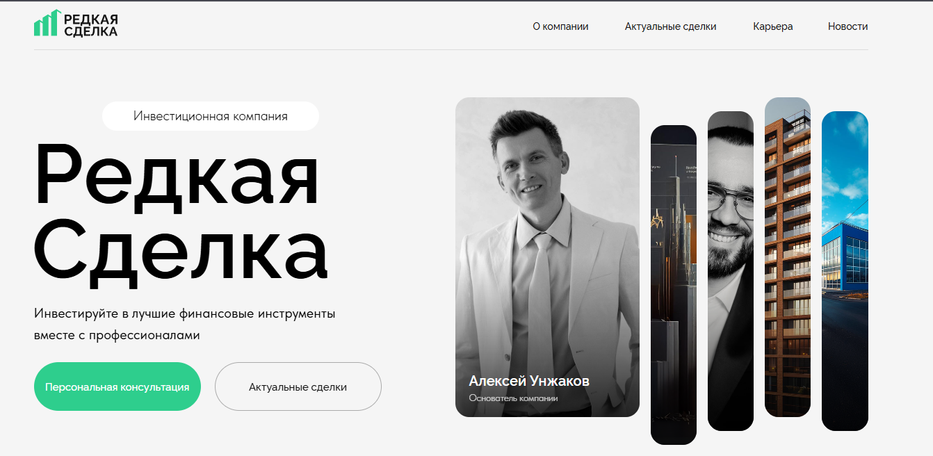 Основным проектом Алексея можно считать инвестиционную компанию Редкая сделка: