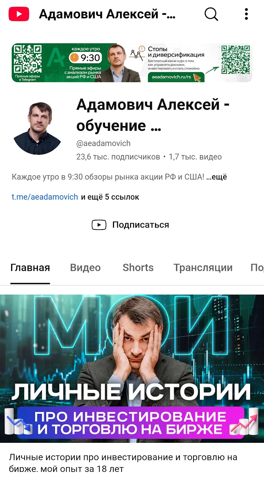 «Школа срединного инвестирования» Алексея Адамовича работает с 2019 года. На сайте aeadamovich ru можно найти вдохновляющие тексты про то, какой у основателя большой опыт в сфере финансов. Канал Алексея Адамовича на Ютуб пестрит роликами об инвестициях и финансовых стратегиях. Но тут есть пара нюансов. Сразу отметим, что количество просмотров на видео довольно скромное. К тому же мы не знаем, какой опыт у автора на самом деле. В итоге эта тишина на канале может говорить о невысоком качестве контента.