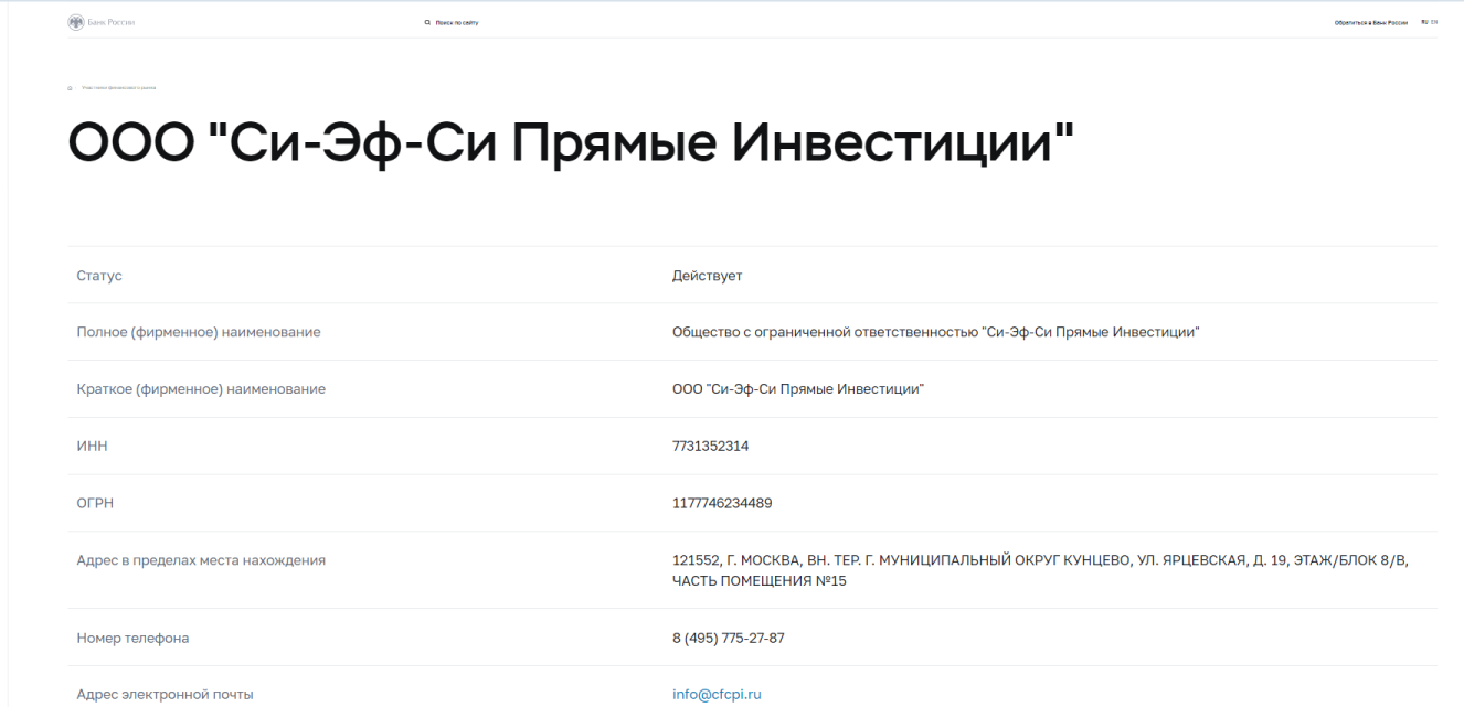 Ознакомиться с компанией можно с помощью официальной платформы cfcpi ru. Из главных разделов: “О компании”, “Раскрытие информации”, “Новости”, “Контакты”.