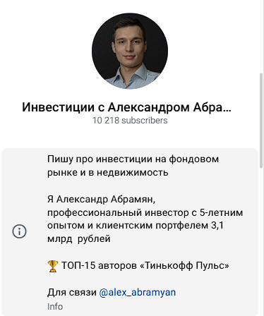 Александр Абрамян — это инвестор, который ведет свой личный блог в телеграм канале. Он рассказывает о своих достижениях, чтобы привлечь новых клиентов для инвестиций. Но можно ли с ним заработать? Узнаете в данном обзоре.