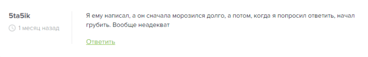 - игнор: при обращении в личные сообщения, автор долго морозит участников и после повторных вопросов и времени ожидания может начать неадекватное общение;