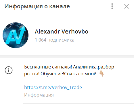 Для общения трейдер предлагает использовать аккаунт в Телеграмме @ Verhov Trade, куда можно написать интересующие вопросы и изложить наболевшие темы.