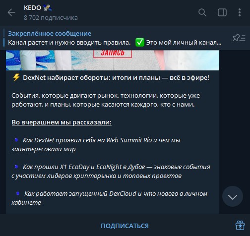 К слову, новых клиентов команда Alex Kedo в основном привлекает через Телеграмм-канал @dexkedo. Так что будьте осторожны!