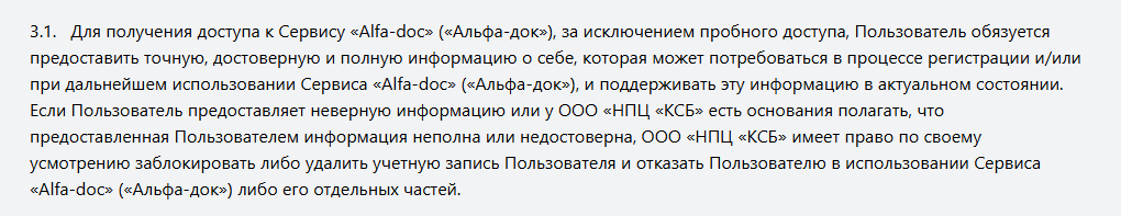 Ответственность компании урезана до минимума. Сервис предоставляется «как есть». ООО «НПЦ «КСБ» не гарантирует соответствие ожиданиям пользователей. За убытки от использования системы не отвечает. Форс-мажор трактуется очень широко.